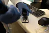 A small container the size of a mobile phone, connected to a computer.