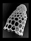 Researchers know this because most radiolarians have a lacy exoskeleton. Each species is its own work of art. They can look like bells, stars, hats and Christmas tree ornaments. Ancient sea beds are full of tiny radiolarian skeletons from far back in time.