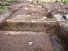 The remains of a house foundation provide further insight into life at the site.